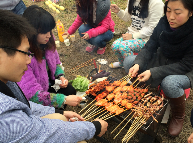 你帮着搭棚,我帮着生火,他忙着鼓风,还有的忙着理菜,倒水。烧烤井然有序的进行着,这不能不说明大家都是烧烤的好手。 搭棚,支架,生火,烧烤,好不欢乐。在这喧闹的城市里,我们借此机会更加亲近了自然,更加贴近了生活,我们忘却了工作中的焦虑,我们互相了解的彼此,我们互相增进了情谊,我们也更加懂得了什么叫生活。