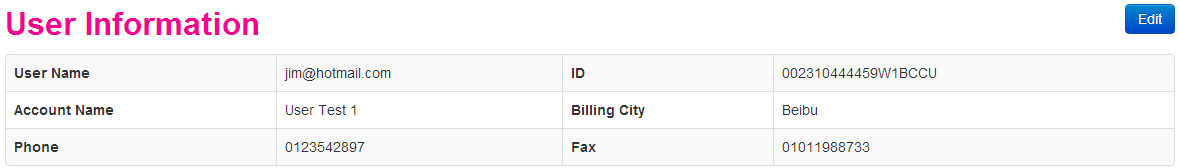 用户信息 – 登陆成功后,可以看到登陆用户的其他详细信息。同时,可以通过编辑按钮对用户信息进行更新操作。