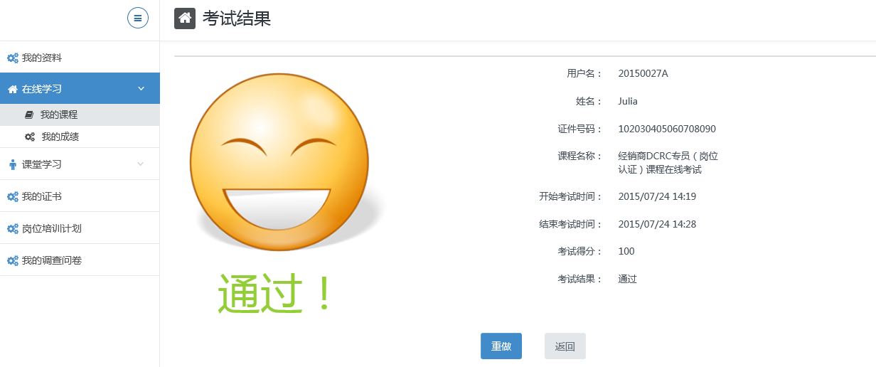 获得一个便捷的培训考核系统, 极大程度地降低了客户长期在员工培训方面所花费的人力和物力. 上课时间和方式更灵活, 员工学习兴趣更高; 管理者也能更加实时、便捷地查看员工培训情况, 获得了客户的好评.